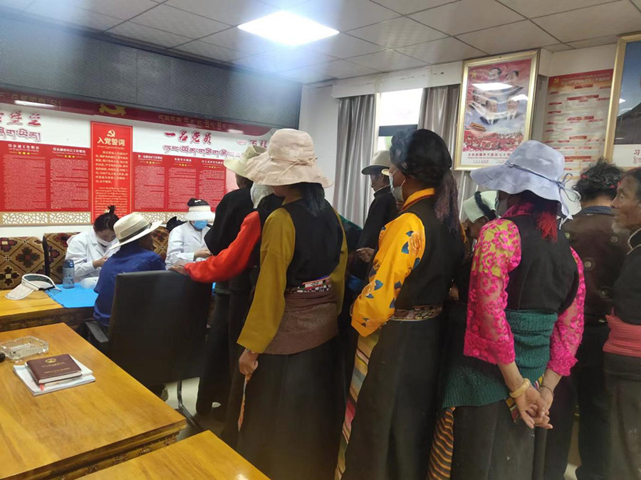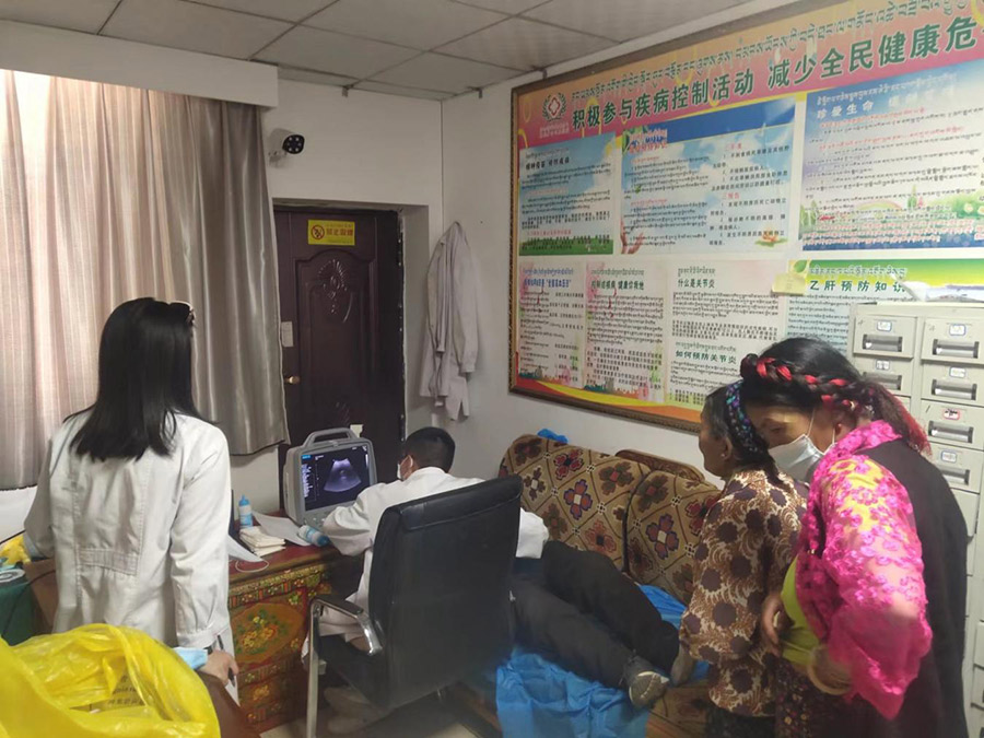 當(dāng)日上午,日喀則市西華醫(yī)院醫(yī)護人員在切娃鄉(xiāng)黨委協(xié)助下,將體檢設(shè)備帶到各村村委會,為群眾進行義務(wù)健康體檢。體檢項目包括B超、心電圖、血常規(guī)、尿常規(guī)、肝腎功能、血糖、血脂和血壓等。體檢過程中,醫(yī)生們向群眾耐心地講解飲食起居方面注意事項與養(yǎng)生保健知識,解答常見病、多發(fā)病的預(yù)防診治等問題,努力推動農(nóng)牧民群眾們實現(xiàn)“無病早預(yù)防、有病早治療、健康有保障”。